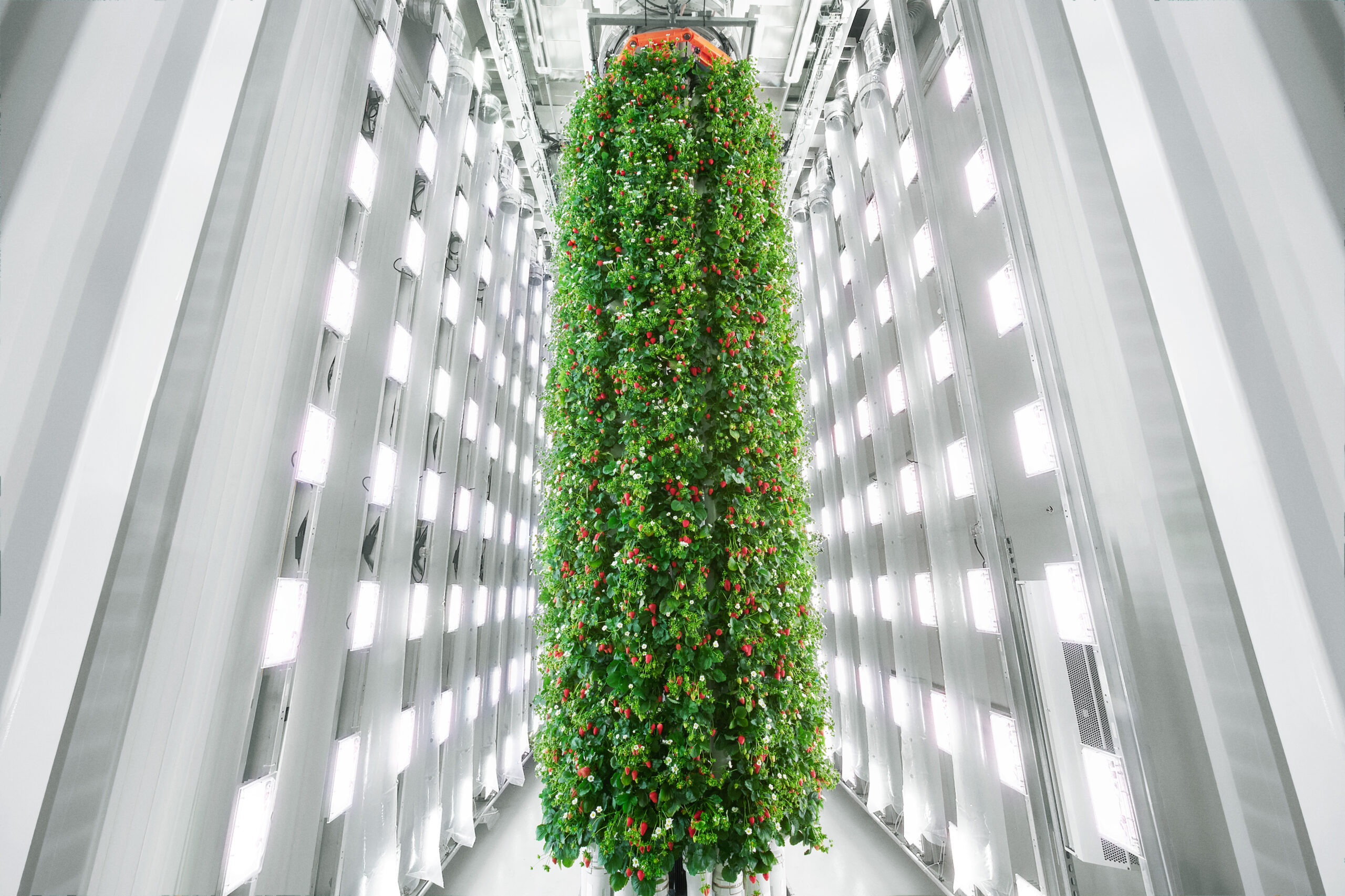 The berries will grow on 30-foot-tall towers inside the facility. Plenty says its Chesterfield location is the world’s first indoor, vertical farm to grow berries at scale.